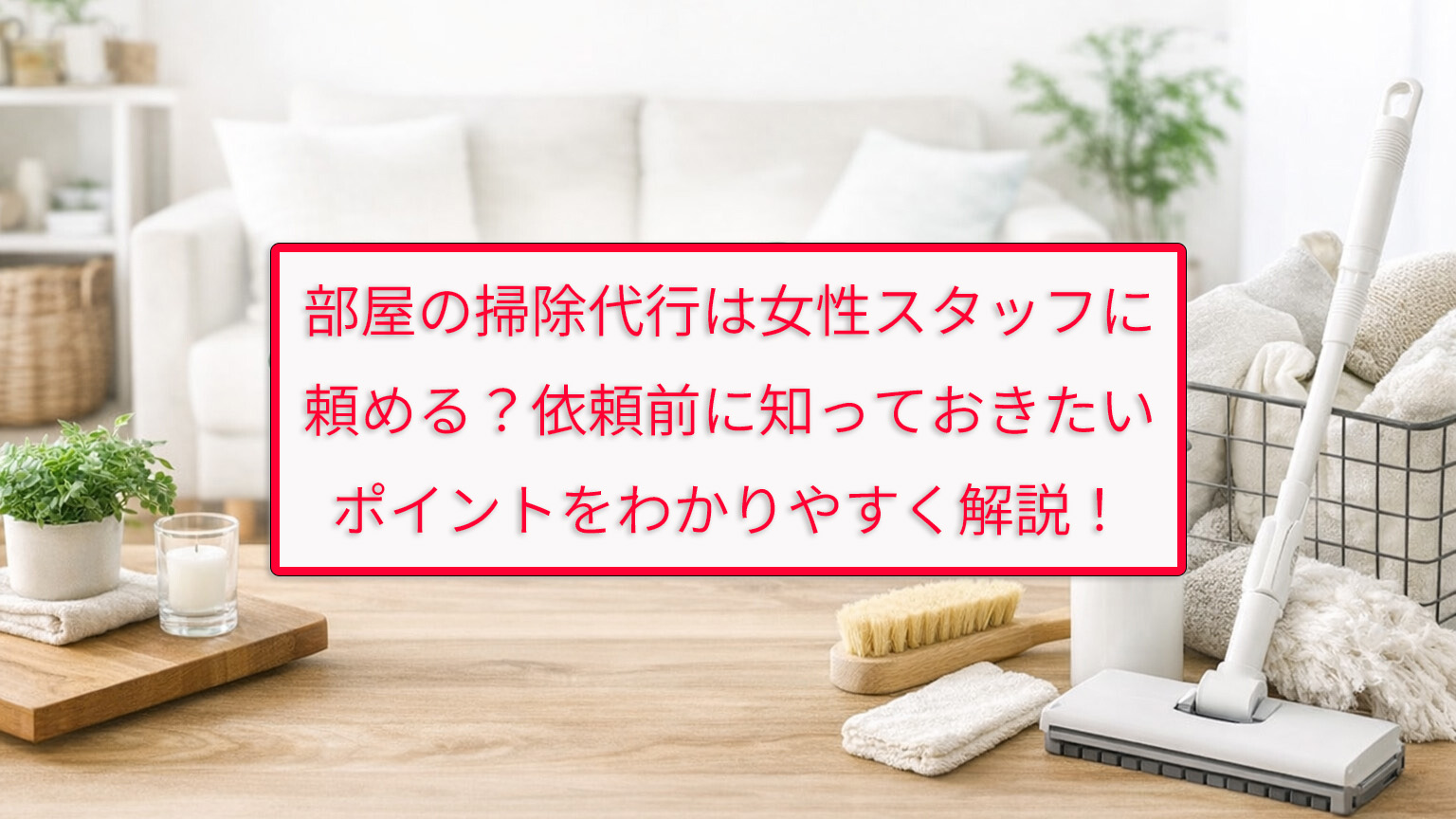 この記事では、部屋の掃除代行を女性スタッフに頼みたい方に向けて、依頼前に知っておきたい基本ポイントや確認事項、サービス選びで失敗しにくくなる考え方を、わかりやすく丁寧に解説します。